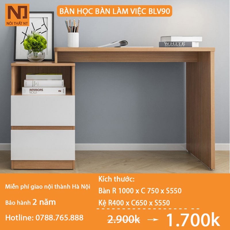 Bạn đang cần mua bàn học, bàn làm việc, bàn vi tính? Bạn đang băn khoăn nên mua ở đâu vừa đẹp mà giá lại vừa rẻ? Vậy thì mời bạn ghé Đồ gỗ nội thất NT nhé, ở đây chúng tôi chuyên sản xuất và cung cấp các loại bàn học, bàn làm việc mẫu mã đẹp, giá thành hợp lý. Bạn không tin ư? Vậy cùng xem mẫu bàn làm việc BLV90 nhé.