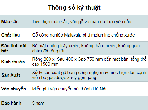 Chất Liệu : Gỗ công nghiệp Malaysia phủ melamine chống xước.