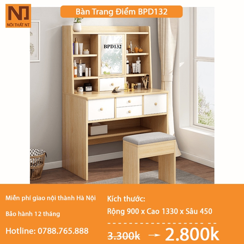 Đồ gỗ nội thất NT chuyên thiết kế, sản xuất và cung cấp các mẫu bàn trang điểm, bàn phấn đẹp, hiện đại, mẫu mã đa dạng, có thể đặt làm kích thước theo yêu cầu. Sau đây là mẫu Bàn trang điểm BPD132A