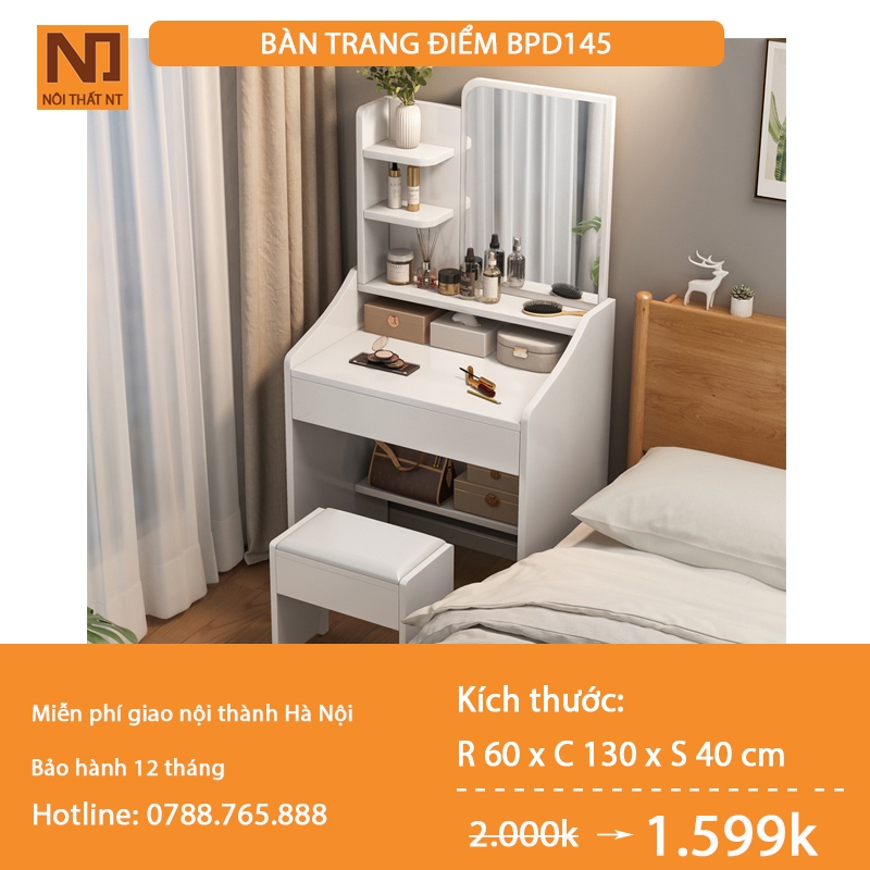 Đồ gỗ nội thất NT chuyên thiết kế, sản xuất và cung cấp các mẫu bàn trang điểm, bàn phấn đẹp, hiện đại, mẫu mã đa dạng, có thể đặt làm kích thước theo yêu cầu. Sau đây là mẫu Bàn trang điểm BPD145