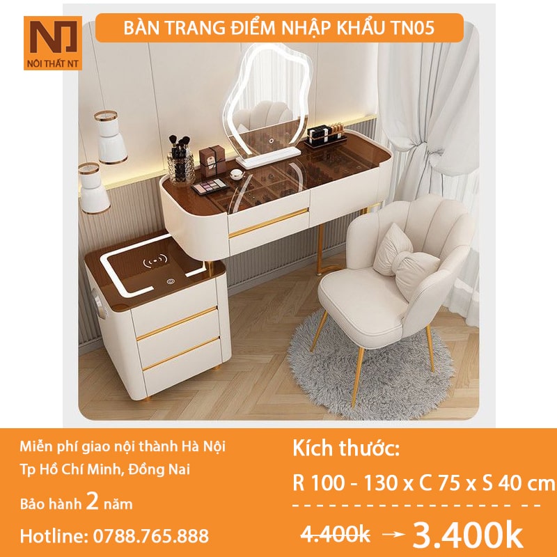 Bàn trang điểm nhập khẩu là sự lựa chọn tốt nhất cho những ai muốn sở hữu một sản phẩm nội thất đẹp, chất lượng và thiết kế độc đáo. Nếu bạn đang tìm kiếm một sản phẩm bàn phấn nhập khẩu, hãy lưu ý các yếu tố quan trọng như chất liệu, thiết kế và kích thước để có thể lựa chọn sản phẩm phù hợp với nhu cầu của mình. Trong bài viết này, chúng ta sẽ tìm hiểu về Bàn trang điểm BPNK TN05, mẫu sản phẩm đang được ưu chuộng hiện nay