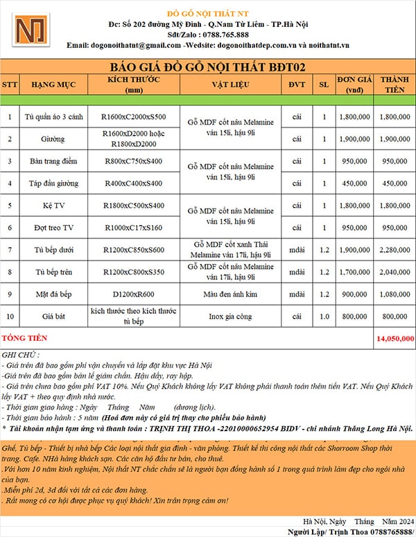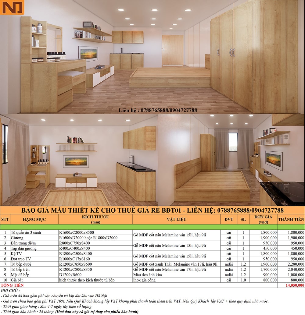 => Tổng chi phí chỉ 14.050.000 đ
