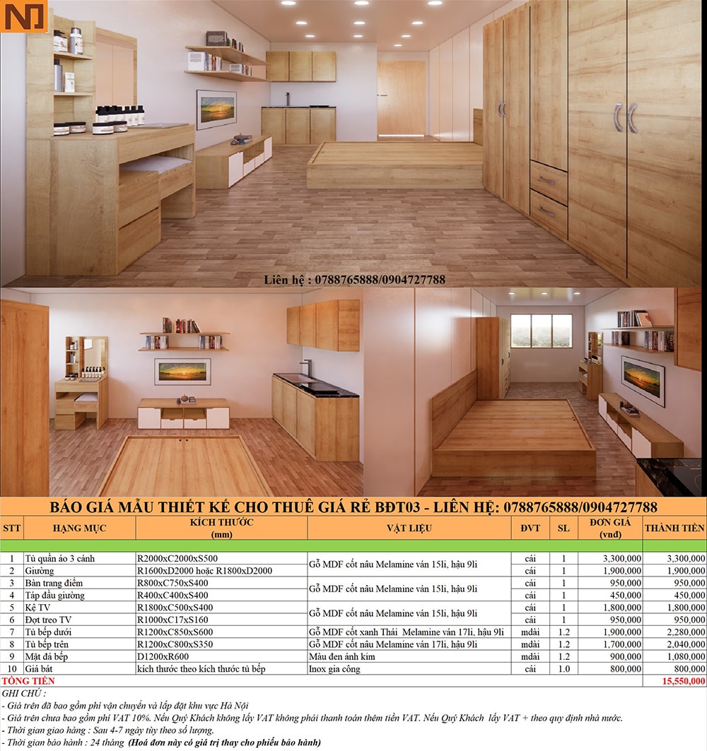 Xem thêm các mẫu nội thất đầu tư cho thuê tại đây