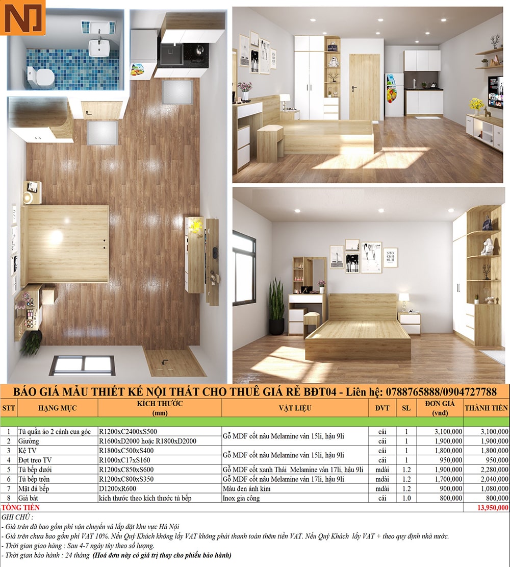 Xem thêm các mẫu nội thất đầu tư cho thuê tại đây