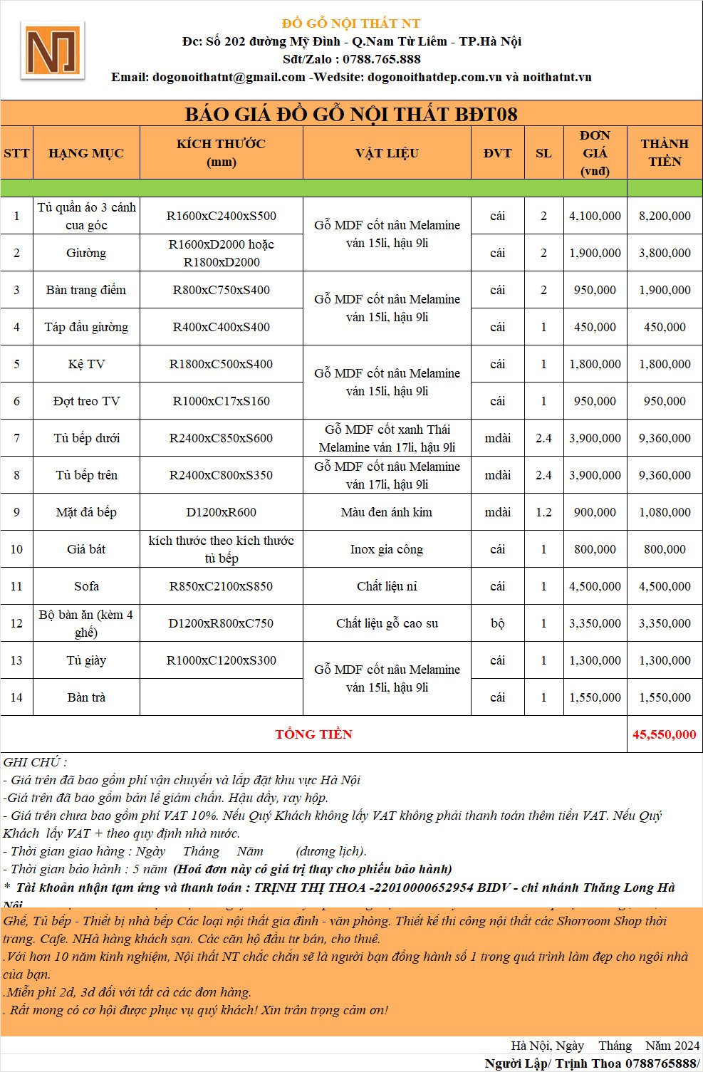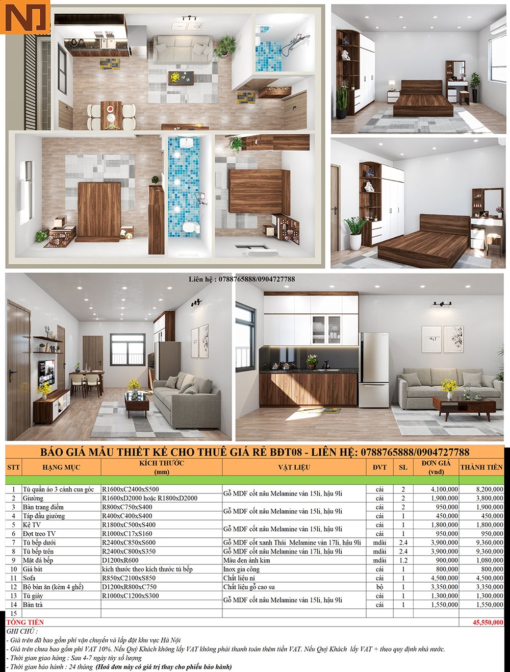 => Tổng chi phí chỉ 45.550.000 đ