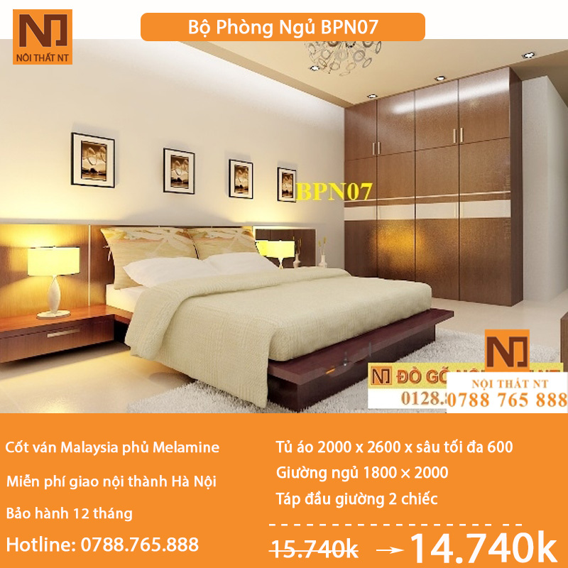Thiết kế bộ nội thất phòng ngủ đẹp BPN07