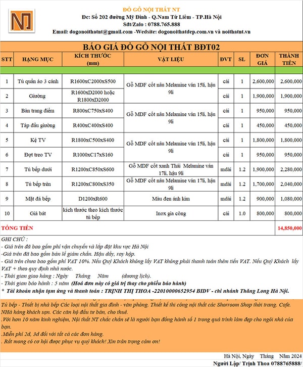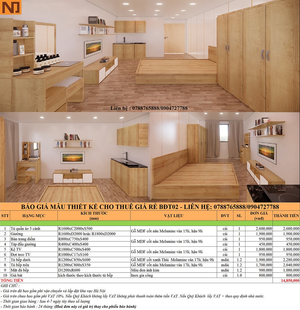 => Tổng chi phí chỉ 14.850.000 đ