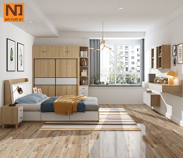Chất liệu: Gỗ công nghiệp Malaysia phủ melamine, chất liệu gỗ tốt, không cong vênh mối mọt.