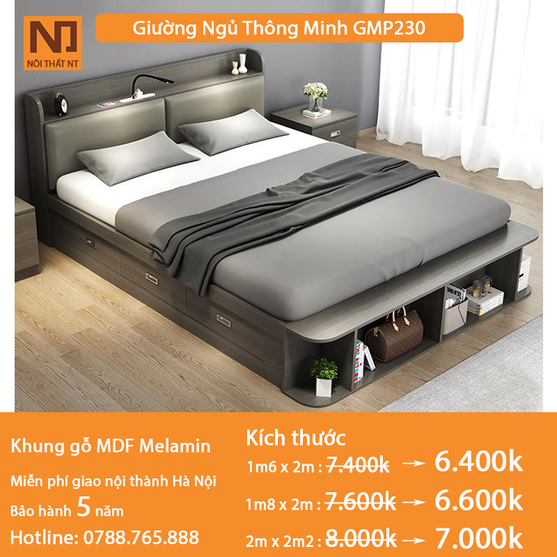 Có thể nói, sau một ngày dài làm việc, lúc mà được đặt lưng lên chiếc giường ngủ là lúc mà con người ta được thư giãn nhất, bao mệt mỏi dường như tan biến hết. Vì vậy, việc lựa chọn cho mình một chiếc giường ngủ vừa ý giúp chúng ta có được cảm giác thoải mái, vui vẻ hơn trong thời gian nghỉ ngơi. Hiểu được nhu cầu của khách hàng, Đồ gỗ nội thất NT giới thiệu đến quý khách mẫu giường ngủ đẹp GMP230 kiểu dáng hiện đại. Với thiết kế chắc chắn, đảm bảo tính thẩm mỹ thì còn lý do gì mà bạn không rinh ngay mẫu giường ngủ đẹp này về cho căn phòng của mình.