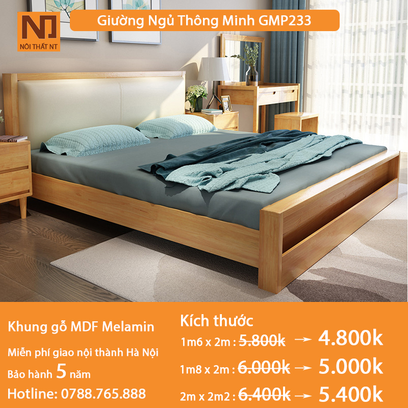 Có thể nói, sau một ngày dài làm việc, lúc mà được đặt lưng lên chiếc giường ngủ là lúc mà con người ta được thư giãn nhất, bao mệt mỏi dường như tan biến hết. Vì vậy, việc lựa chọn cho mình một chiếc giường ngủ vừa ý giúp chúng ta có được cảm giác thoải mái, vui vẻ hơn trong thời gian nghỉ ngơi. Hiểu được nhu cầu của khách hàng, Đồ gỗ nội thất NT giới thiệu đến quý khách mẫu giường ngủ đẹp GMP233 kiểu dáng hiện đại. Với thiết kế chắc chắn, đảm bảo tính thẩm mỹ thì còn lý do gì mà bạn không rinh ngay mẫu giường ngủ đẹp này về cho căn phòng của mình.