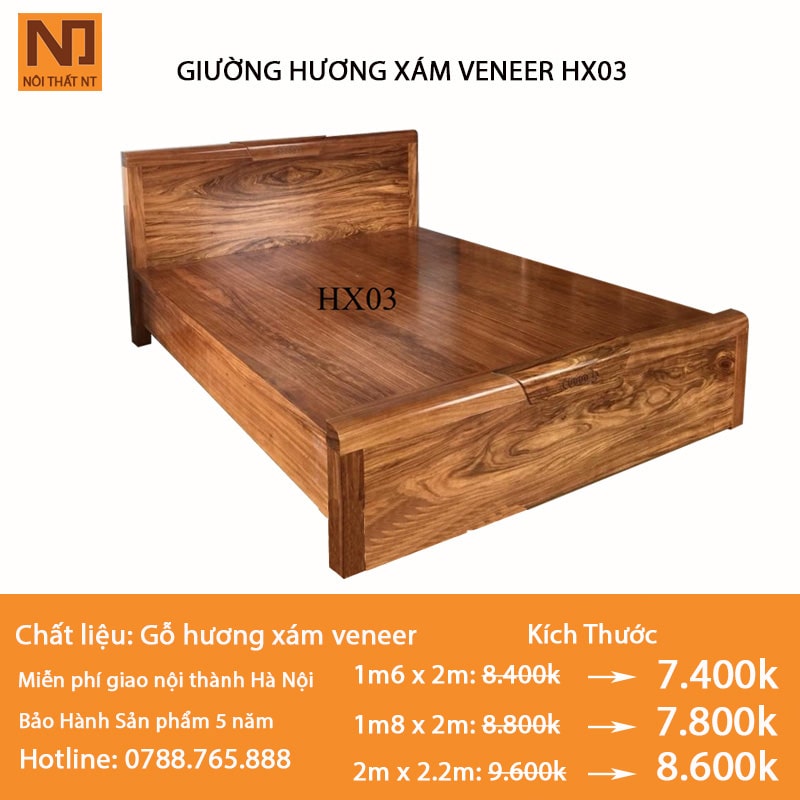 Giường hương xám veneer HX03 có tại Nội thất NT
