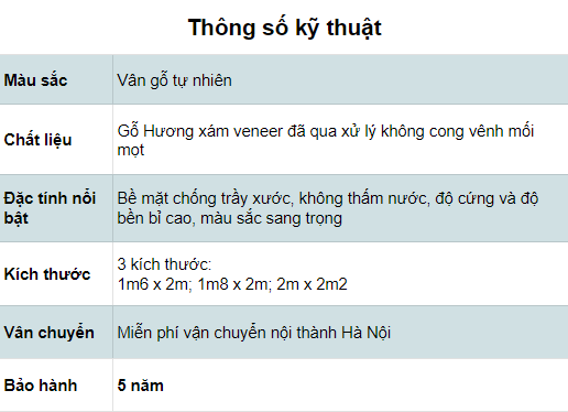 Chất liệu: Gỗ Hương xám veneer đã qua xử lý không cong vênh mối mọt.