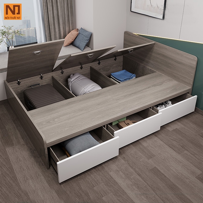 Giường ngủ thông minh giá rẻ thiết kế mẫu mã hiện đại, đẹp, chất liệu gỗ bền tốt, giá thành hợp lý phù hợp với thì trường