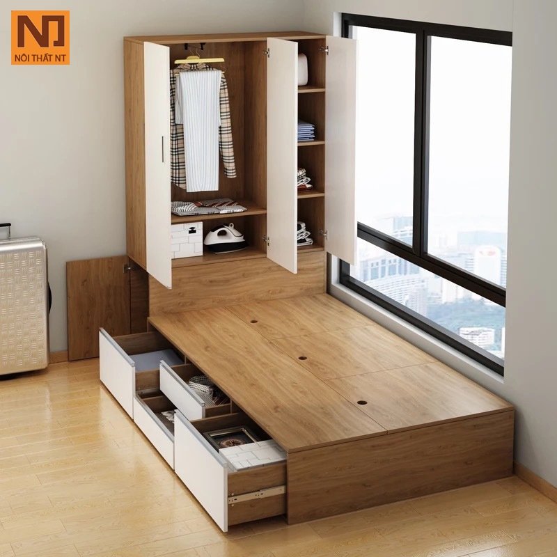 Giường ngủ thông minh giá rẻ thiết kế mẫu mã hiện đại, đẹp, chất liệu gỗ bền tốt, giá thành hợp lý phù hợp với thì trường