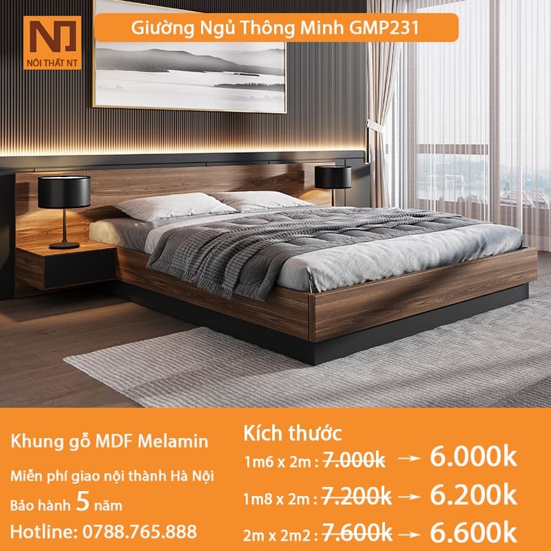 Có thể nói, sau một ngày dài làm việc, lúc mà được đặt lưng lên chiếc giường ngủ là lúc mà con người ta được thư giãn nhất, bao mệt mỏi dường như tan biến hết. Vì vậy, việc lựa chọn cho mình một chiếc giường ngủ vừa ý giúp chúng ta có được cảm giác thoải mái, vui vẻ hơn trong thời gian nghỉ ngơi. Hiểu được nhu cầu của khách hàng, Đồ gỗ nội thất NT giới thiệu đến quý khách mẫu giường ngủ đẹp GMP231 kiểu dáng hiện đại. Với thiết kế chắc chắn, đảm bảo tính thẩm mỹ thì còn lý do gì mà bạn không rinh ngay mẫu giường ngủ đẹp này về cho căn phòng của mình.