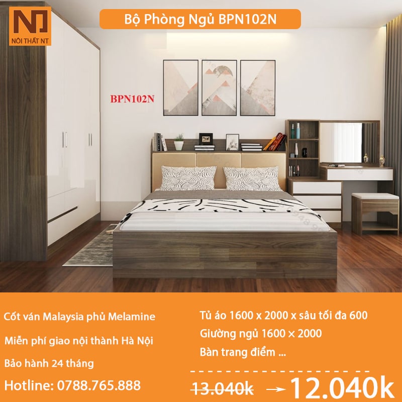 Thiết kế bộ nội thất phòng ngủ đẹp BPN102N
