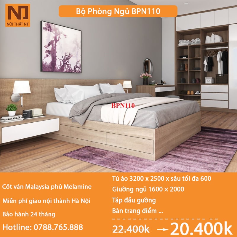 Thiết kế bộ nội thất phòng ngủ đẹp BPN110