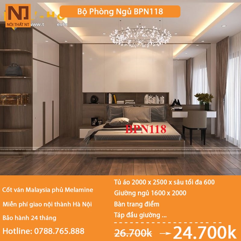 Thiết kế bộ nội thất phòng ngủ đẹp BPN118