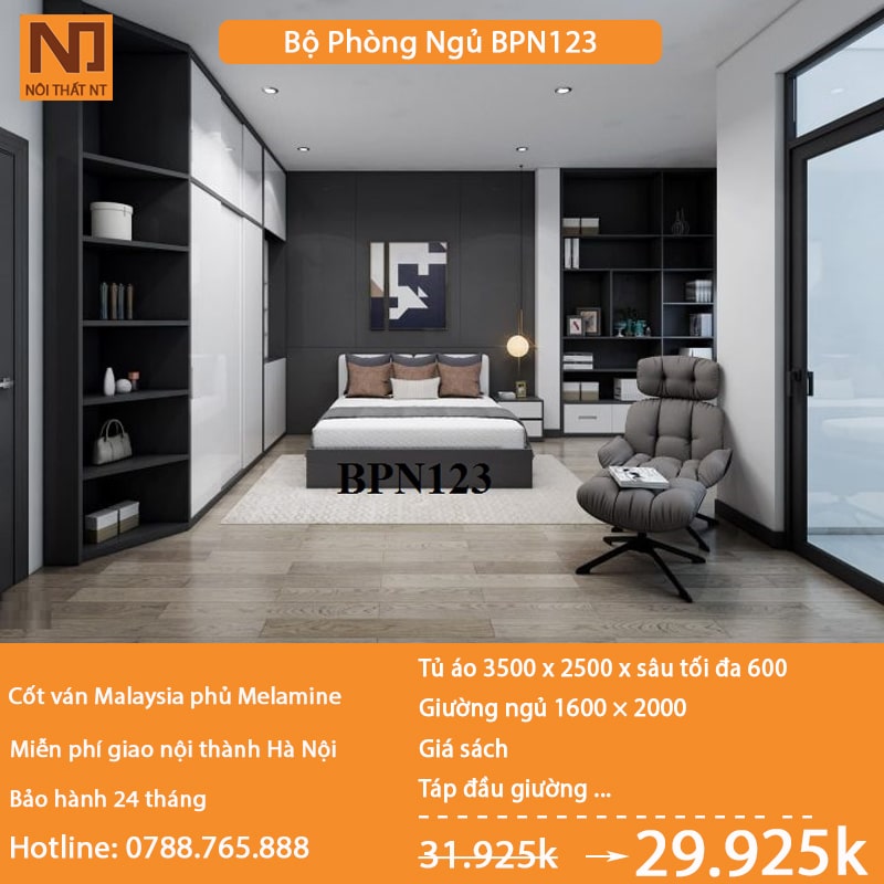 Thiết kế bộ nội thất phòng ngủ đẹp BPN123