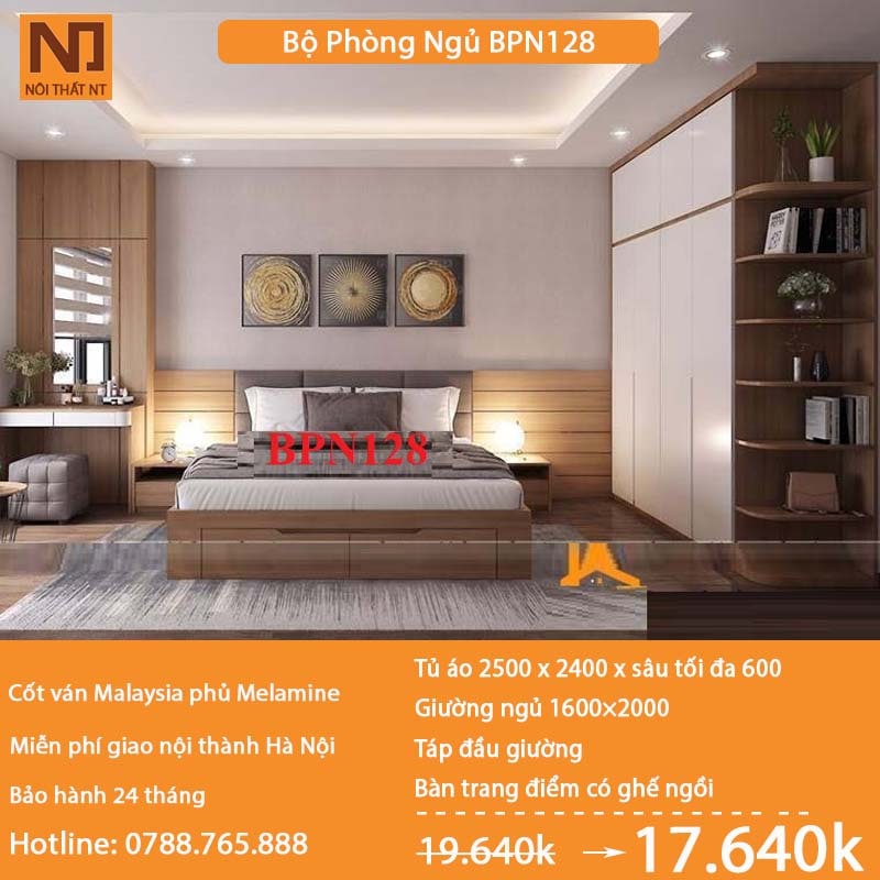 Thiết kế bộ nội thất phòng ngủ đẹp BPN128