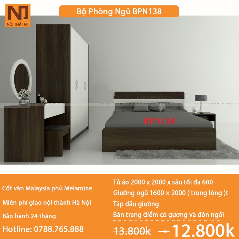 Thiết kế bộ nội thất phòng ngủ đẹp BPN138