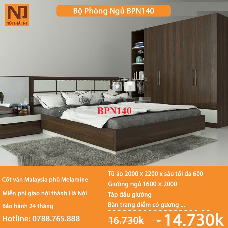 Thiết kế bộ nội thất phòng ngủ đẹp BPN140