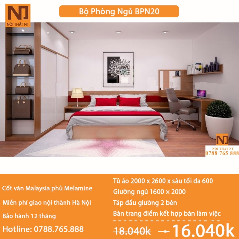 Thiết kế bộ nội thất phòng ngủ đẹp BPN20