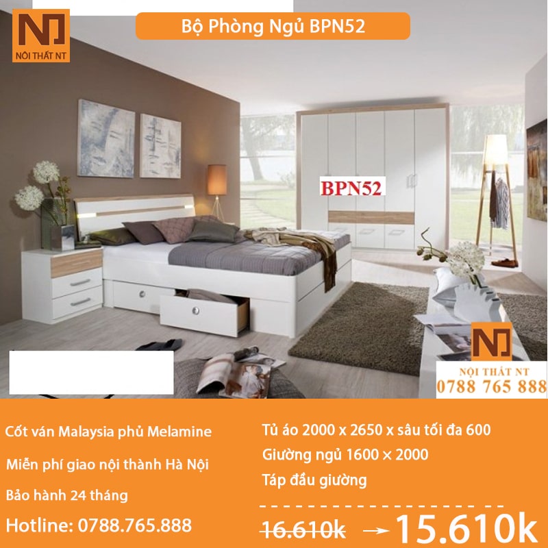 Thiết kế bộ nội thất phòng ngủ đẹp BPN52