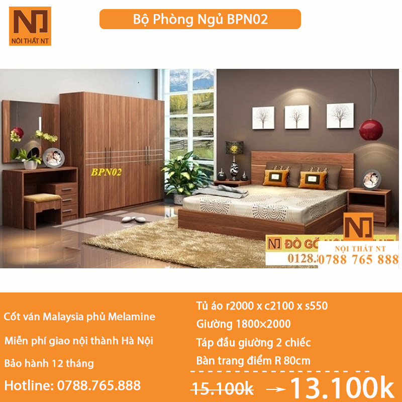Thiết kế bộ nội thất phòng ngủ đẹp BPN02