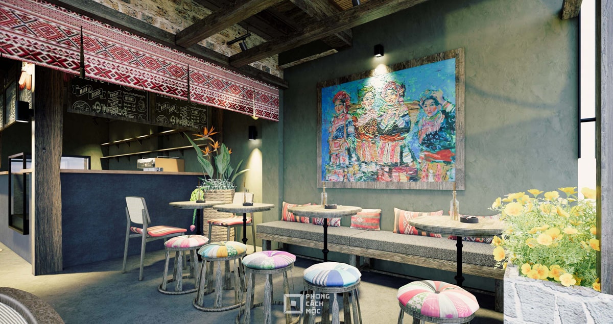 Màu sắc và trang trí cũng rất quan trọng trong quán cafe phong cách Bohemian. Màu sắc thường là màu sắc ấm áp như nâu, xanh lá cây, và vàng, cùng với các mảng màu sắc tươi sáng để tạo điểm nhấn. Trang trí bằng nghệ thuật thủ công, tranh vẽ, gương cổ điển và các vật trang sức độc đáo thể hiện tinh thần nghệ thuật và sự tự do trong trang trí không gian.công, tranh vẽ, gương cổ điển và các vật trang sức độc đáo