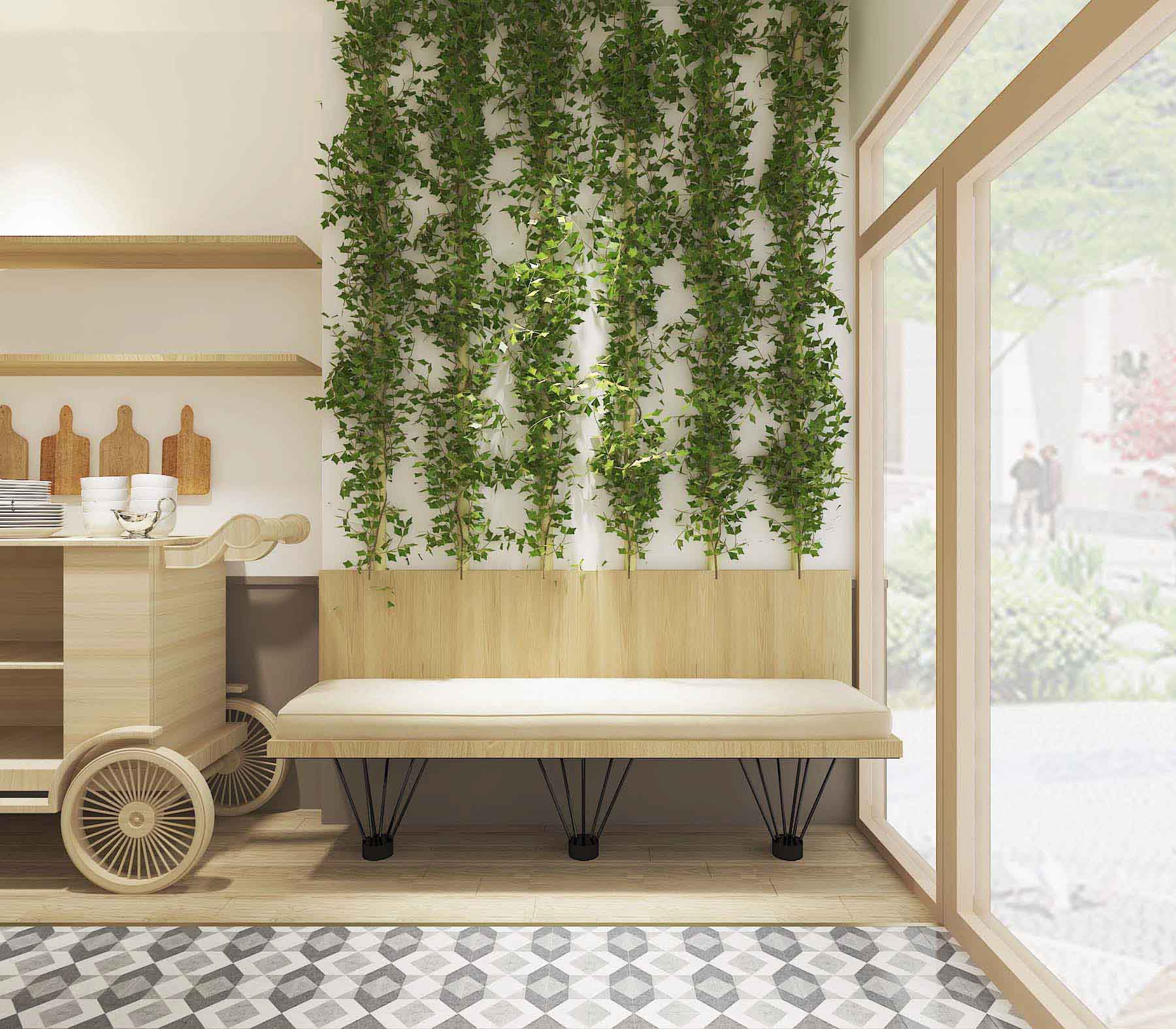 Thiết kế nội thất: Ghế có dáng vẻ đơn giản và thoải mái, thường được bọc bằng lớp nệm mềm mại và vải tự nhiên. Bàn thường có kiểu dáng sáng sủa và đơn giản. Điểm nhấn thường được đặt ở các chi tiết nhỏ như tranh treo tường, cây cỏ trong nhà, và các phụ kiện trang trí tự nhiên.