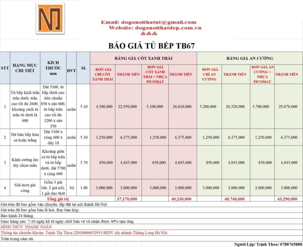 Báo giá mẫu tủ bếp hiện đại thiết kế TB67