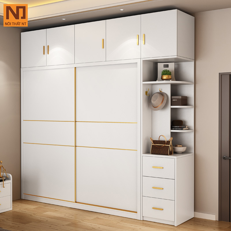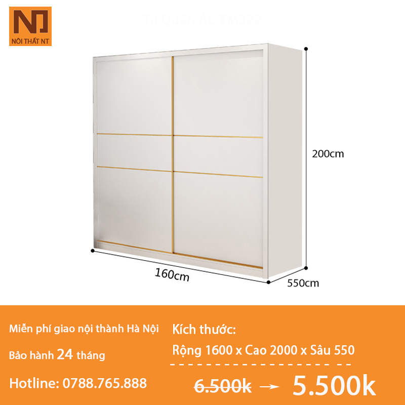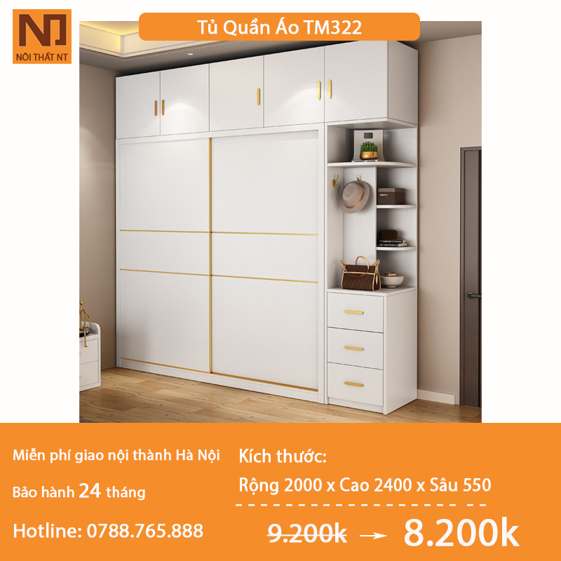 Tủ quần áo gần như là sản phẩm không thể thiếu đối với mỗi người. Nó giúp không gian sống của bạn gọn gàng hơn, là nơi cất giữ những bộ trang phục đẹp đẽ của bạn. Hiện nay trên thị trường có rất nhiều tủ quần áo mẫu mã, chất liệu khác nhau. Nếu bạn còn đang tìm kiếm địa chỉ sản xuất, thiết kế tủ quần áo nào ở Hà Nội uy tín thì hãy tham khảo các mẫu tủ quần áo đẹp gỗ công nghiệp của Đồ gỗ nội thất NT nhé, chúng tôi tin là bạn sẽ hài lòng. Cùng xem mẫu tủ quần áo hiện đại TM322 nhé.
