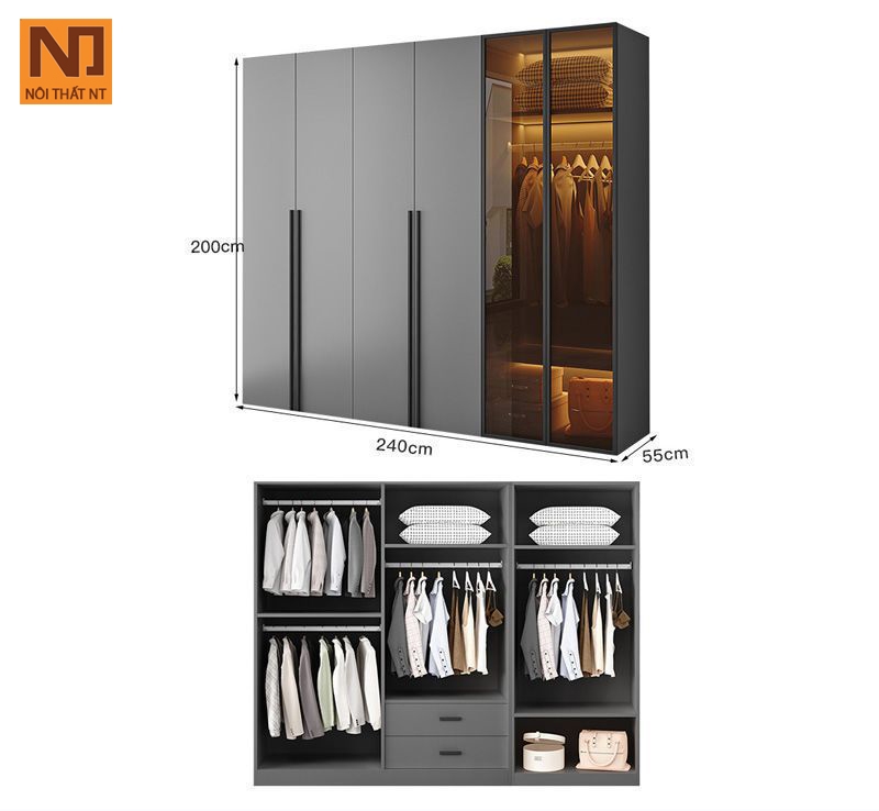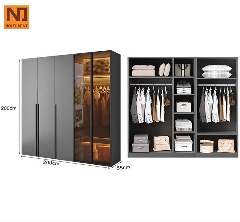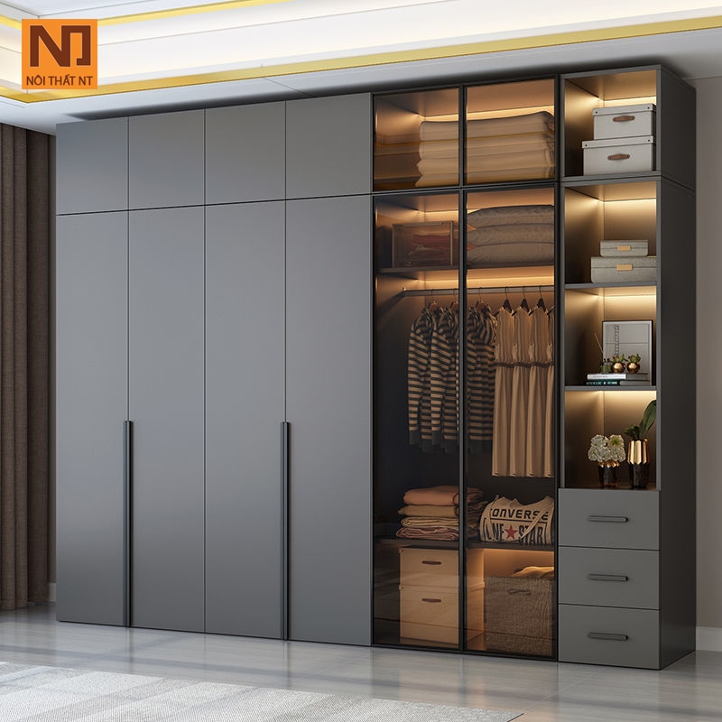 Tủ quần áo gần như là sản phẩm không thể thiếu đối với mỗi người. Nó giúp không gian sống của bạn gọn gàng hơn, là nơi cất giữ những bộ trang phục đẹp đẽ của bạn. Hiện nay trên thị trường có rất nhiều tủ quần áo mẫu mã, chất liệu khác nhau. Nếu bạn còn đang tìm kiếm địa chỉ sản xuất, thiết kế tủ quần áo nào ở Hà Nội uy tín thì hãy tham khảo các mẫu tủ quần áo đẹp gỗ công nghiệp của Đồ gỗ nội thất NT nhé, chúng tôi tin là bạn sẽ hài lòng. Cùng xem mẫu Tủ Quần Áo TMD334 nhé.