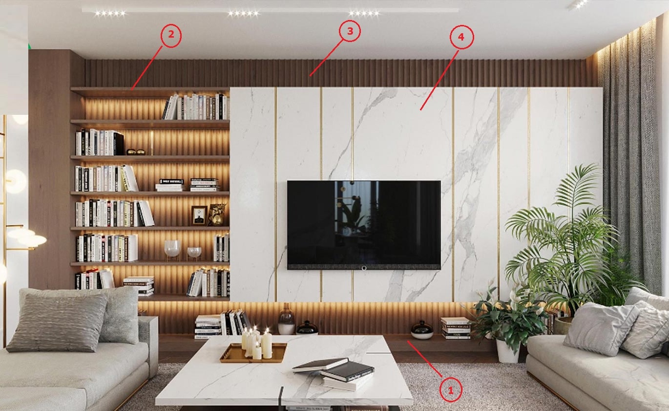 Bước 4 : Thi công ốp vách Tivi theo yêu cầu