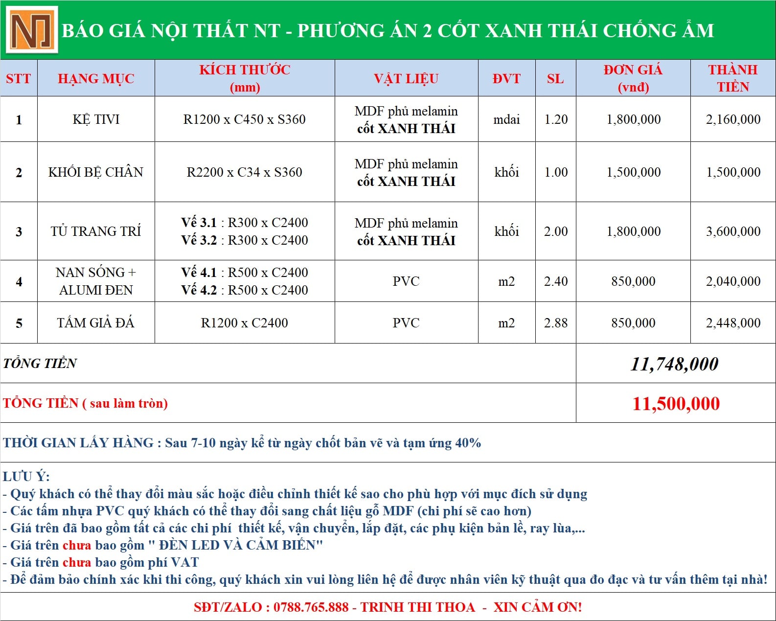 Sau khi thực hiện ốp vách kệ tivi xong, nhân viên Nội Thất NT tiến hành kiểm tra lại một lần nữa. Nếu không có sai xót gì, nhận thanh toán của khách hàng và tư vấn về chính sách bảo hành nếu khách hàng yêu cầu.